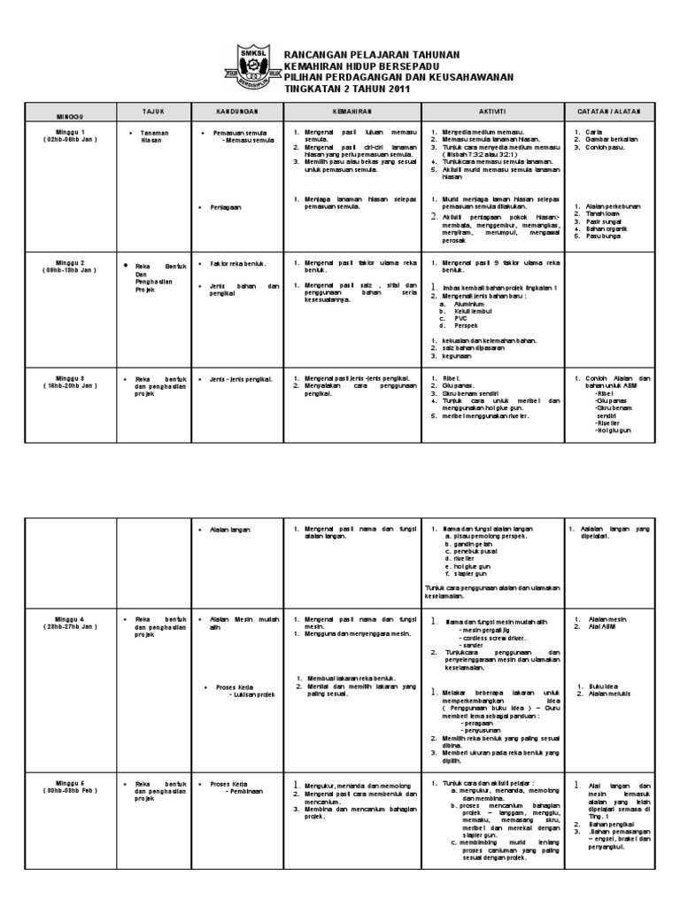 Rancangan Pengajaran Tahunan Khb Perdagangan Keusahawanan Tingkatan 2 Pdf
